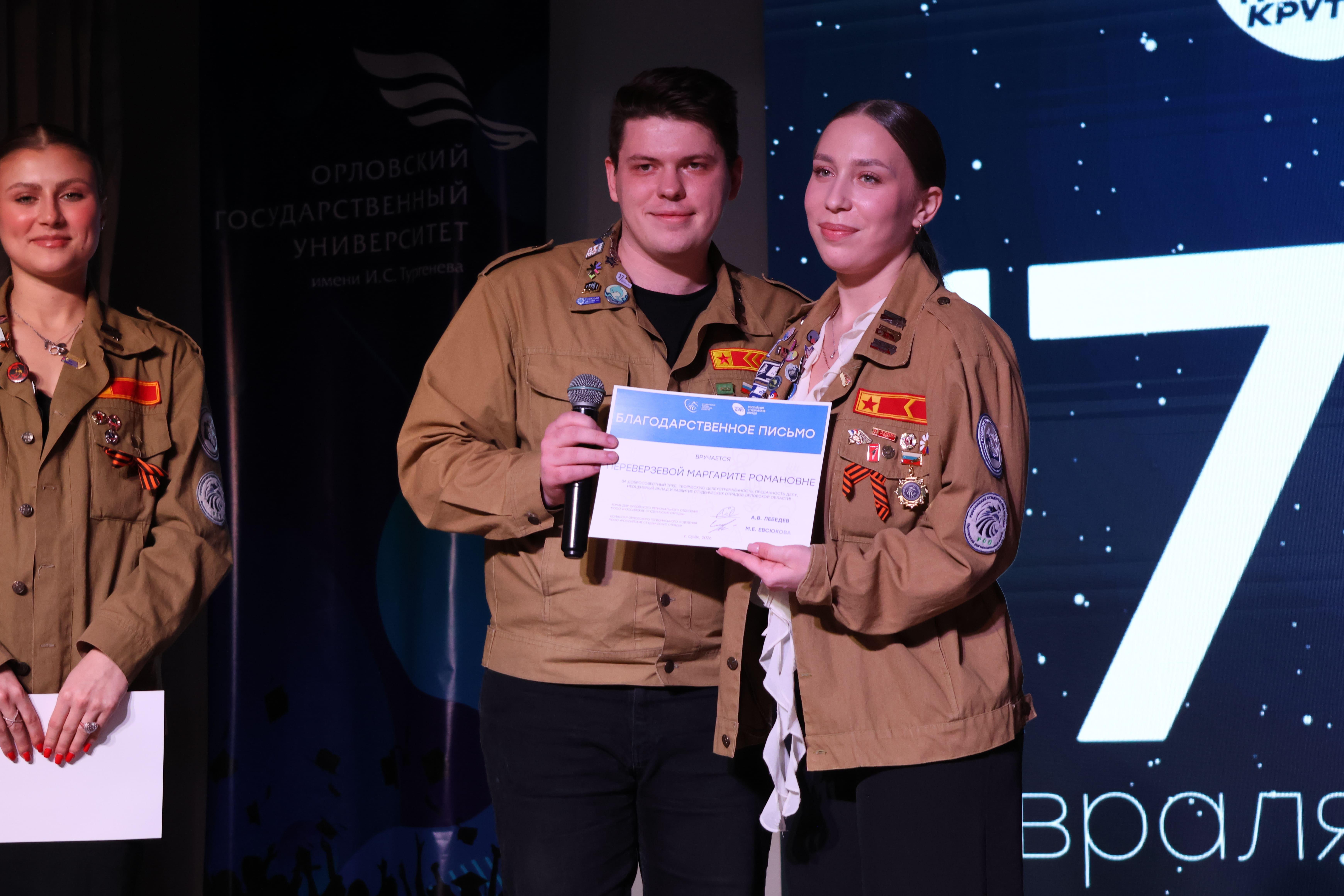 17 февраля в ОГУ имени И.С. Тургенева состоялся торжественный концерт, посвященный Дню Российских студенческих отрядов – этот день является точкой отсчета современной истории движения, появившегося в 1959 году.