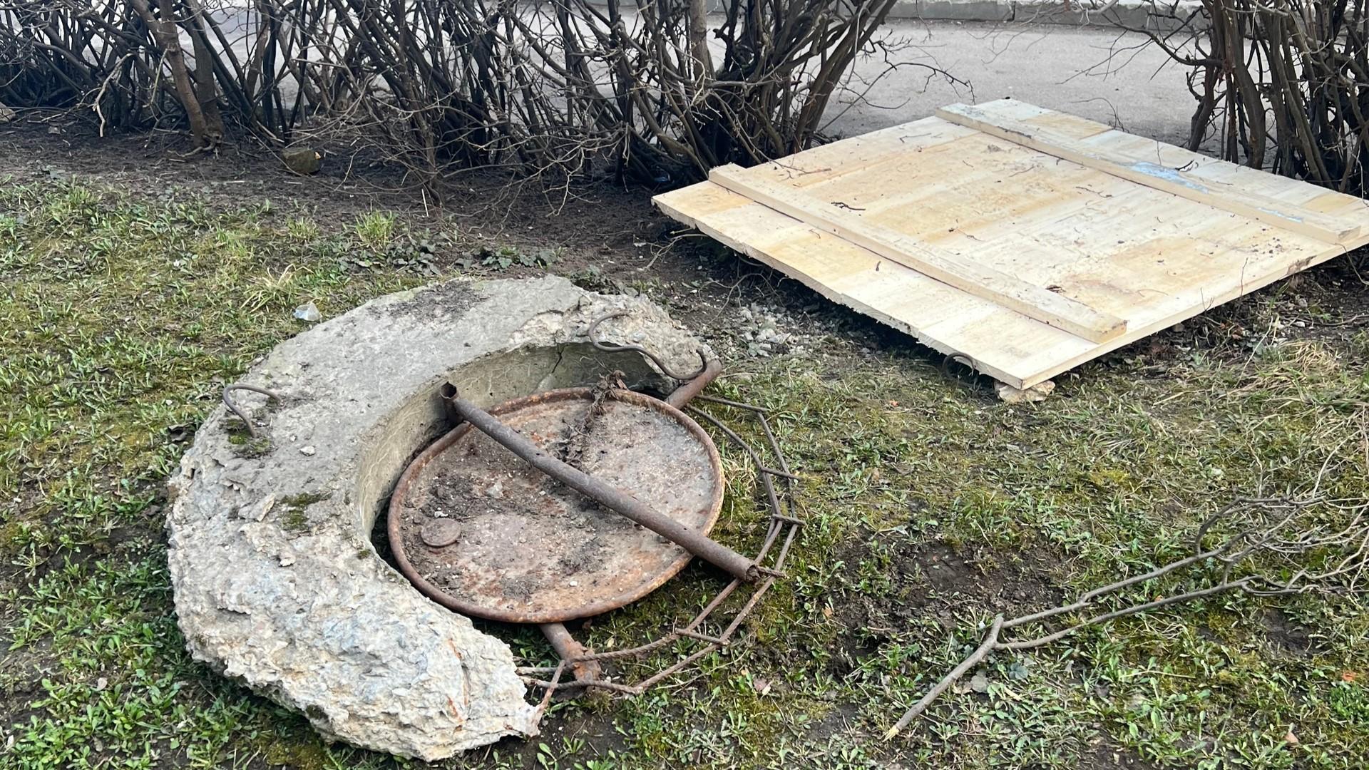 Жители Ливен обеспокоены состоянием территории возле дома №12а на улице Октябрьской. После ремонтных работ, проведённых неизвестными службами, один из люков накрыт самодельным деревянным щитом, а старая конструкция так и осталась лежать рядом — её не убрали.