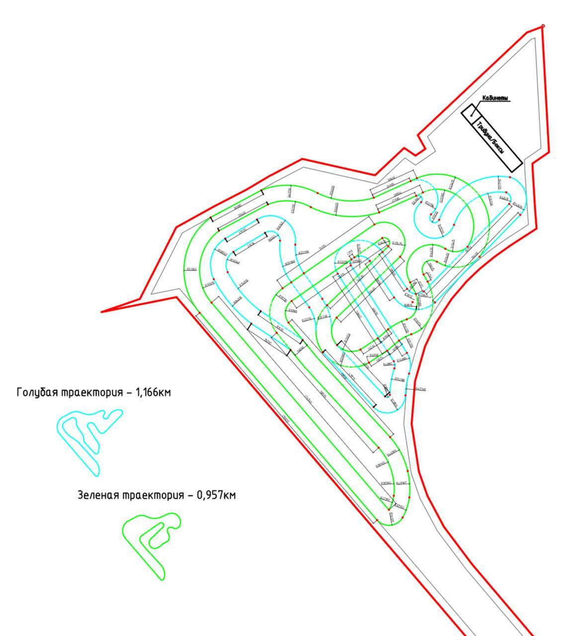 Он пояснил, что это может быть заброшенная парковка, бывший автодром или просто пустырь. Судя по фотографии с траекториями трасс, которую он выложил, необходимы участки длиной 1,166 км и 0,957 км.