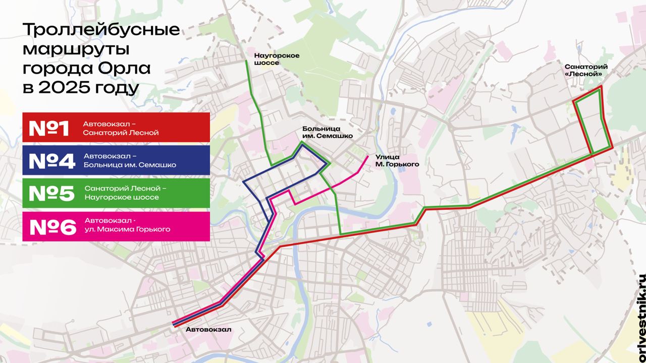 Прежде чем перейти к нынешнему положению дел, стоит вспомнить и нереализованные проекты, которые так и остались на бумаге. Планы по запуску троллейбусных линий в разные районы Орла появлялись неоднократно, однако ни один из них так и не был доведен до конца. Одним из таких замыслов была линия к Аэропорту, которая должна была связать автовокзал с 909-м кварталом. Ее строительство, запланированное еще во второй половине 1980-х, неоднократно откладывалось, а в сложные экономические условия 1990-х годов к монтажу контактной сети так и не приступили.