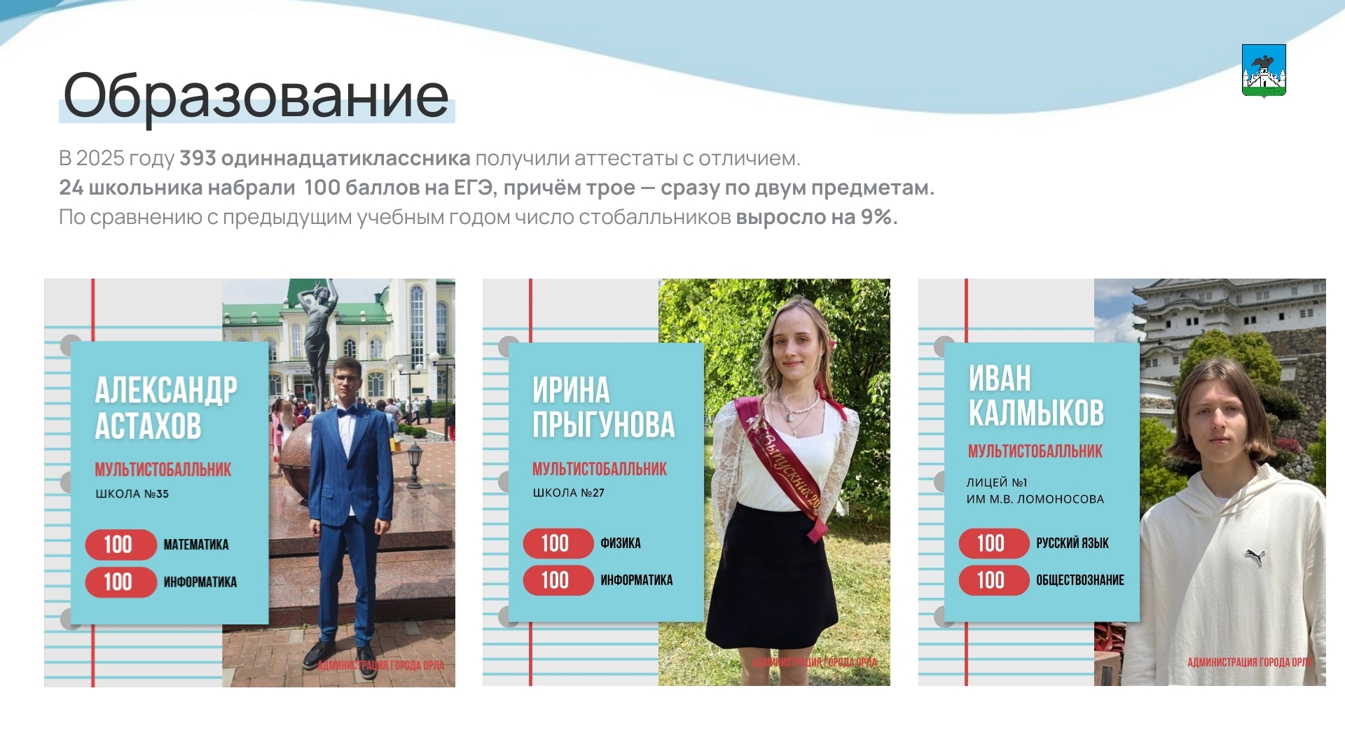 Переходя к следующему блоку, Юрий Парахин отметил: «Успешное будущее человека начинается с качественного образования. И для администрации города Орла — это не просто направление работы, а стратегический приоритет».