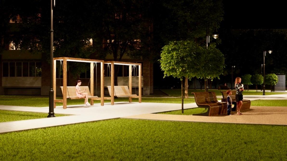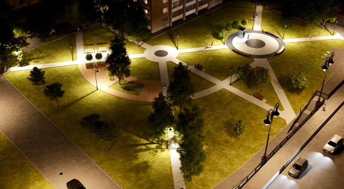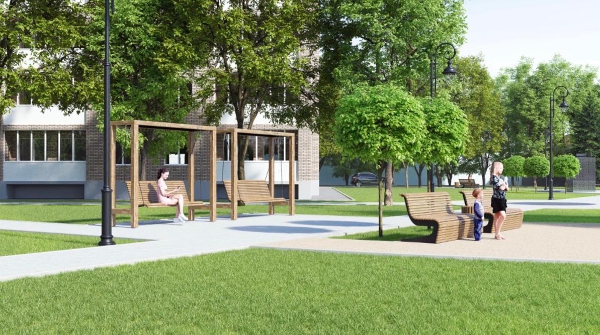 В обновленном сквере появятся удобные пешеходные дорожки, новые скамейки и урны, детская игровая площадка. Также выполнят работы по озеленению территории, установят современное освещение и систему видеонаблюдения.