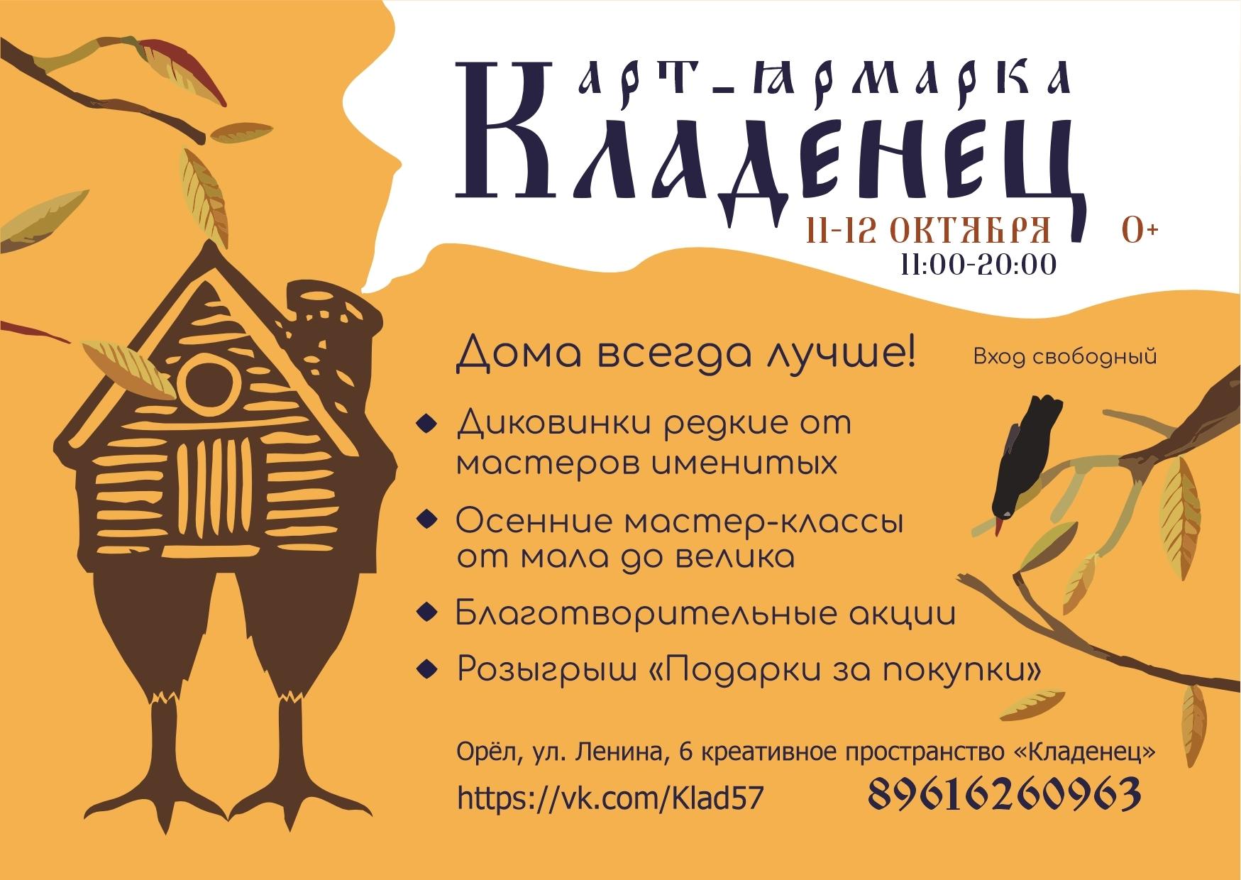 Кроме того, гостей арт-ярмарки ждут атмосферные осенние мастер-классы и тематическая подборка продукции: от сезонного декора и изысканных нарядов в цветах осеннего леса до ремесленного сыра и натуральных продуктов с подворий мценского Междуречья.