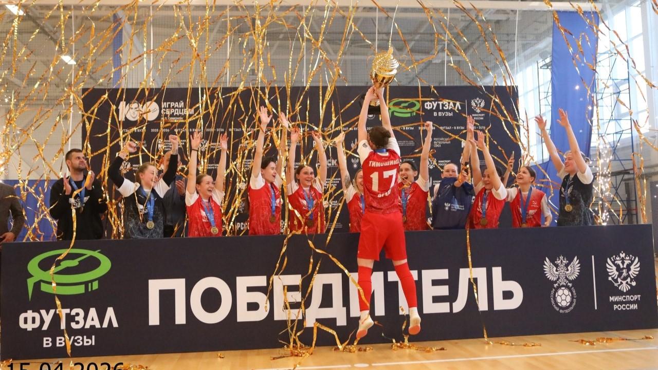 Орловские спортсменки выиграли все пять матчей, включая финальный против московской команды «МосПолитех» — он завершился со счётом 1:0. Решающий гол принёс команде титул чемпионов России среди вузов.