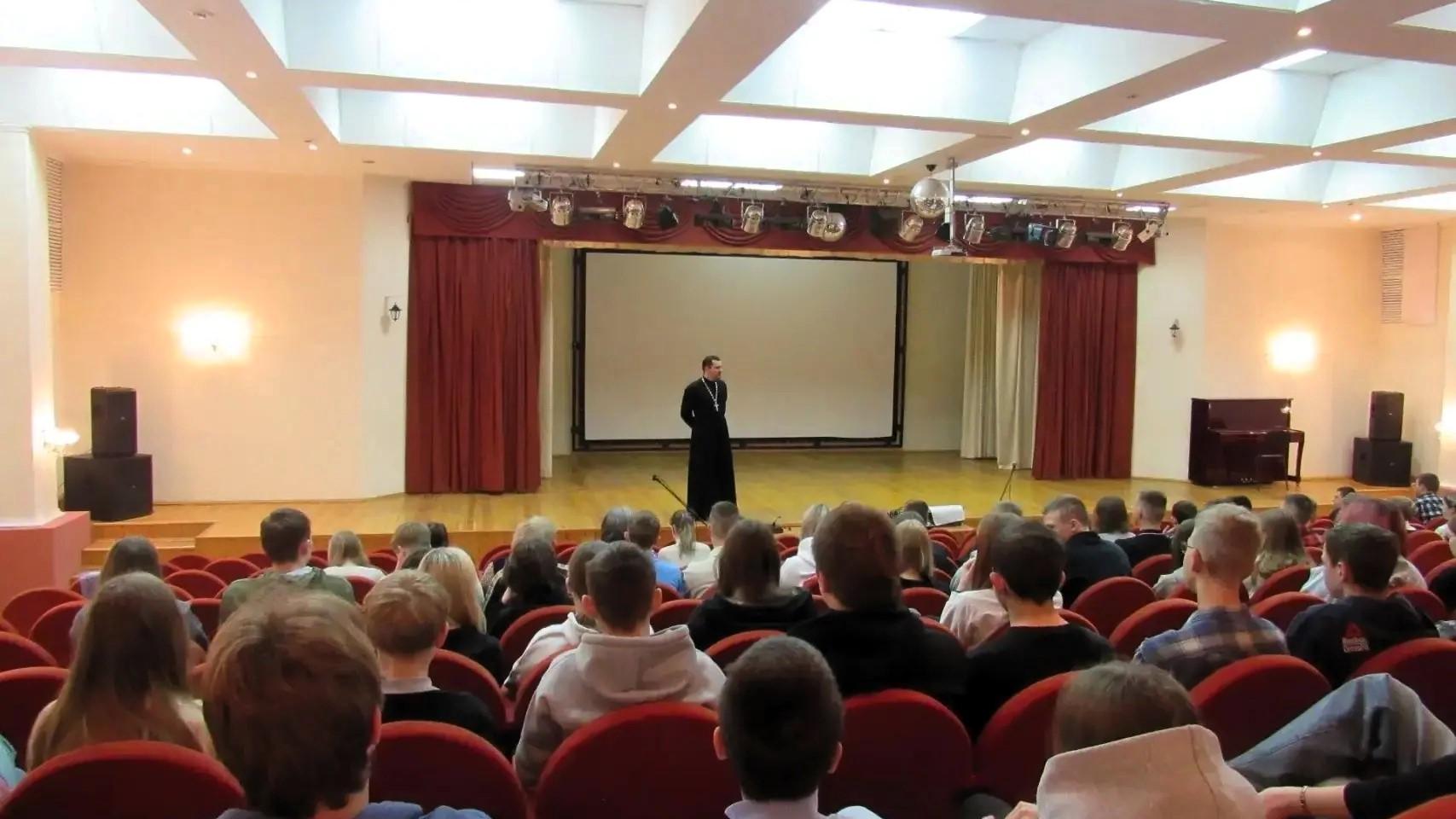 Иерей Сергий Капустин, настоятель храма святого Александра Невского в Орле, пообщался с учащимися школы № 10 в рамках проекта «Диалог со священником».
