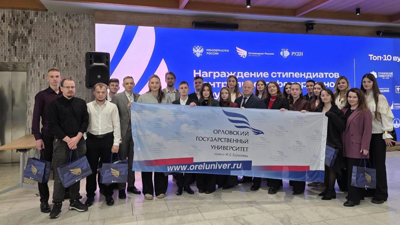 16 декабря в РУДН прошла церемония награждения победителей стипендиальных конкурсов вузов ЦФО. Из 36 стипендиатов ОГУ им. И.С. Тургенева 32 получили стипендию Правительства РФ, четыре — Президента РФ. Студенческая делегация прибыла под руководством Павла Меркулова.
