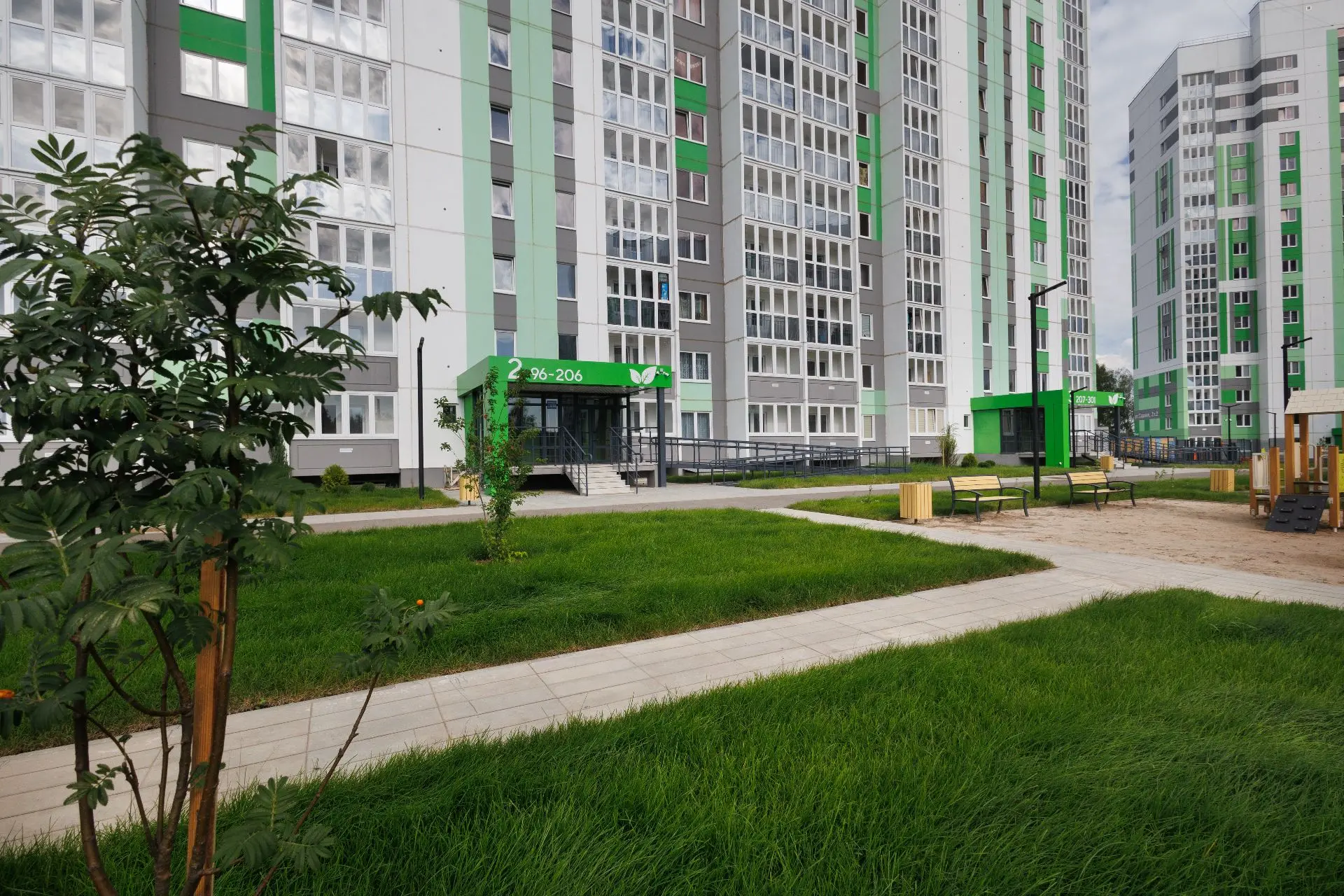 Комфорт. Здесь он собран из множества деталей, основная из которых – безбарьерная среда. Теперь прогулка с коляской не станет испытанием: на территории нет перепадов рельефа, поэтому через весь двор можно пройти без препятствий. Кстати, здесь сквозные подъезды: попасть со двора на парковку можно по самому короткому пути.