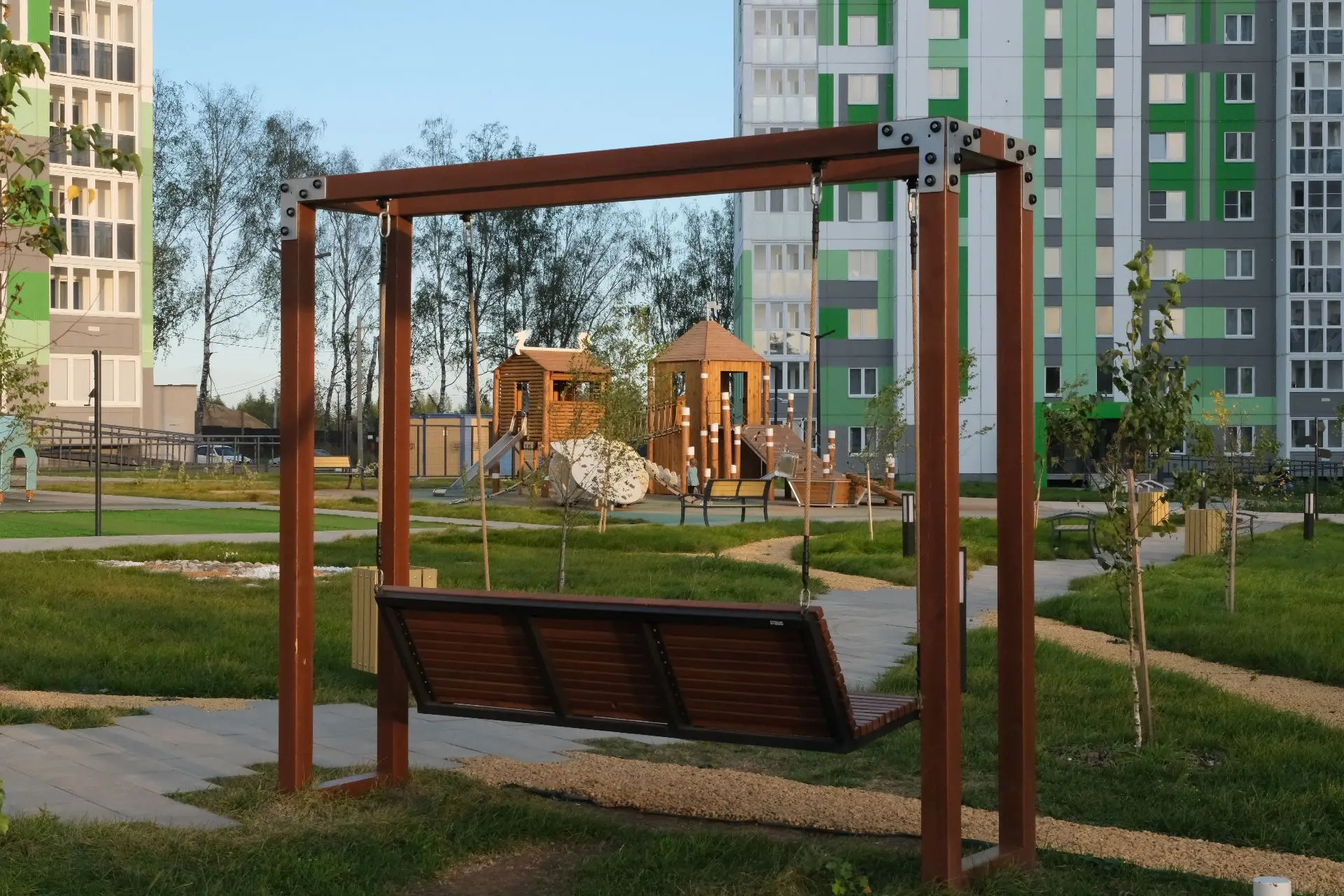 По соседству с природой. Больше не нужно ехать за город, чтобы насладиться пением птиц и свежим воздухом. Выбирайте для себя вариант поближе. В «Зелёном квартале» вы можете провести время на природе прямо под окнами своей квартиры на перголах и шезлонгах среди самых разных растений. Но есть и другой вариант. Совсем рядом, буквально по соседству с жилым комплексом, раскинулся настоящий яблоневый сад. Это – отличное место для фотосессий, для пикника и просто прогулки среди шума листвы. Особенно в сезон цветения. А ещё рядом дендропарк. В общем, вы сможете хоть каждый день проводить на природе, не лишаясь комфорта.