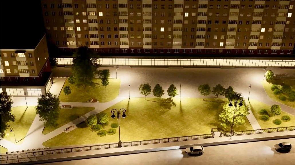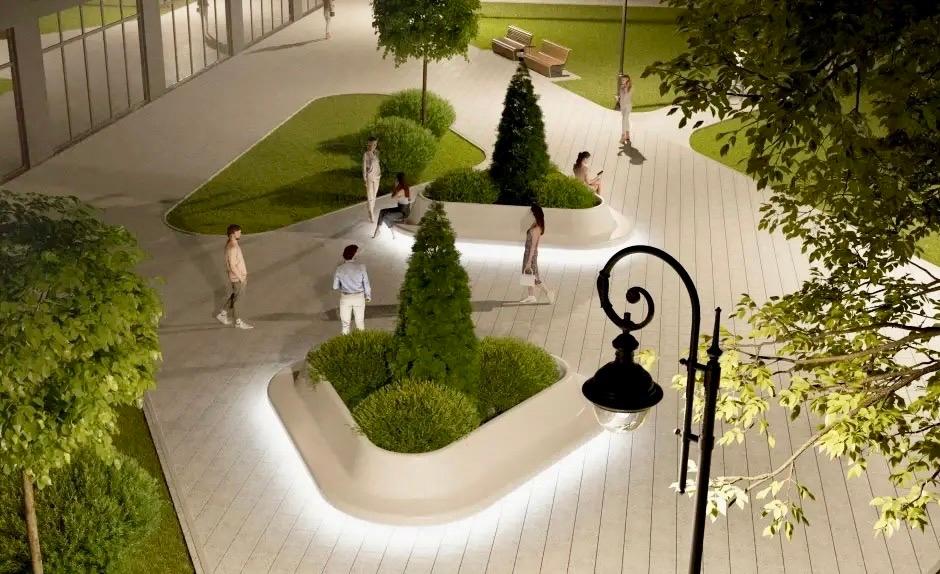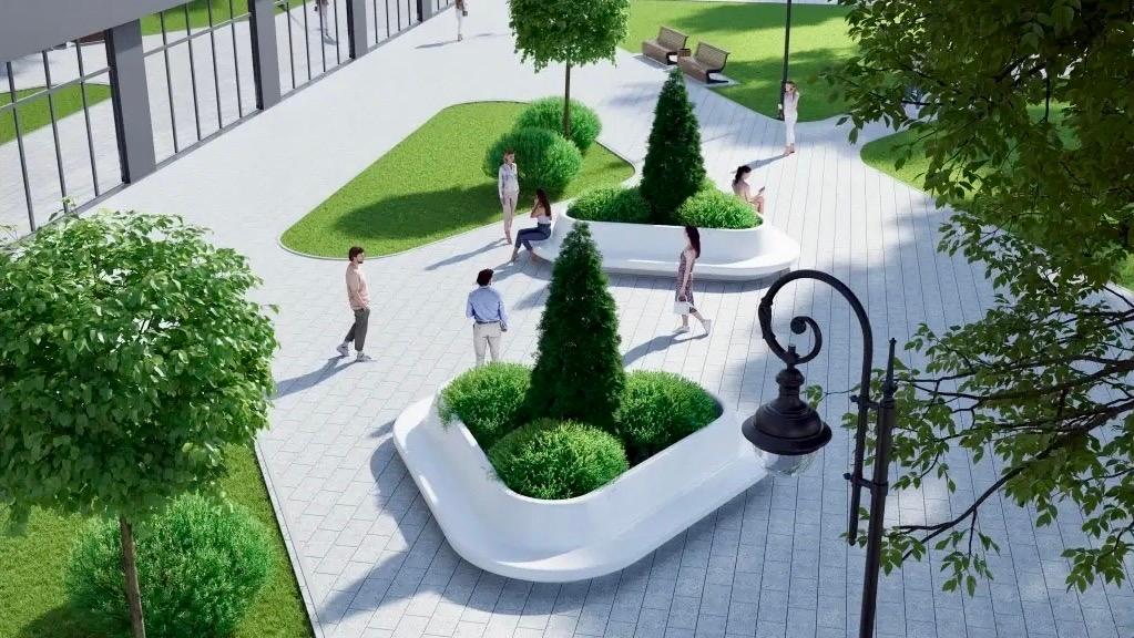 Проектом предусмотрено обустройство пешеходных дорожек с покрытием из тротуарной плитки, установят скамейки и урны, проведут озеленение, а также смонтируют систему освещения и видеонаблюдения.