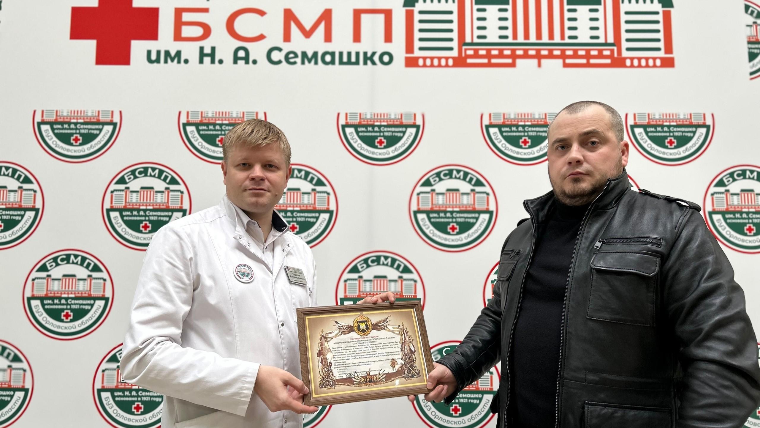В стенах орловской БСМП им. Н. А. Семашко произошла трогательная встреча заведующего кардиологическим отделением №2 Антона Карасёва и командира мотострелкового батальона Дениса Климова.