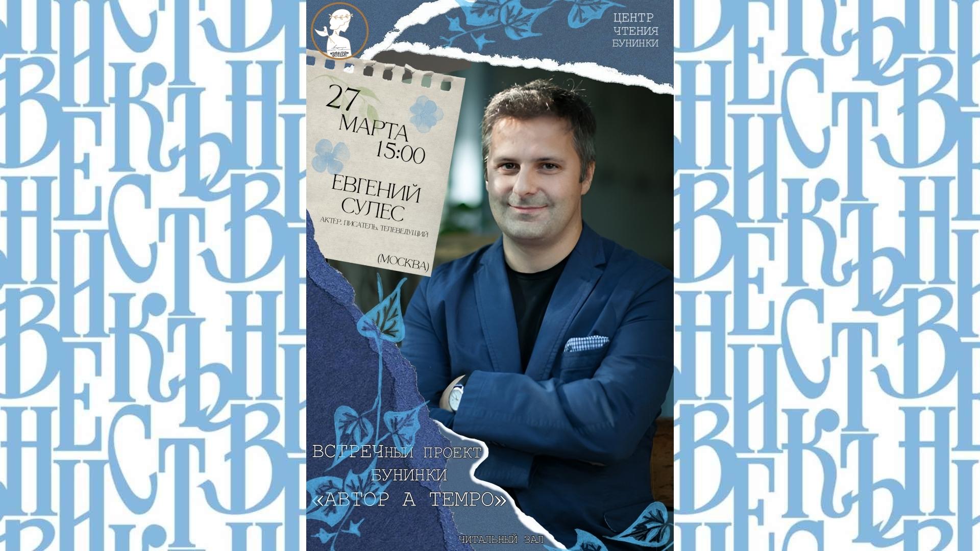 Евгений Сулес — многогранный творческий деятель. Автор нескольких книг, среди которых «Письма к Софи Марсо», «Сто грамм мечты» (попавшая в лонг-лист премии «Большая книга»), «Крымский сборник. Путешествие в память» и «Мир виски и виски мира». Его пьесы «Дойти до Бандераса» и «Ловушка для Божьих птах» успешно ставились на сцене.