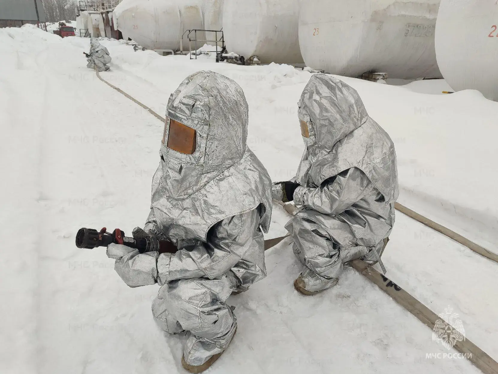 По сценарию загорелся бензин в резервуаре, возникла угроза распространения огня. Персонал эвакуировался и сообщил о ЧП спасателям. К месту направили подразделения пожарной охраны, организовали боевое развертывание, установили технику на гидранты и начали подачу воды и пены. Штаб руководил действиями прибывших сил. Благодаря четким действиям условный пожар быстро потушили. Это первое подобное учение в этом году.