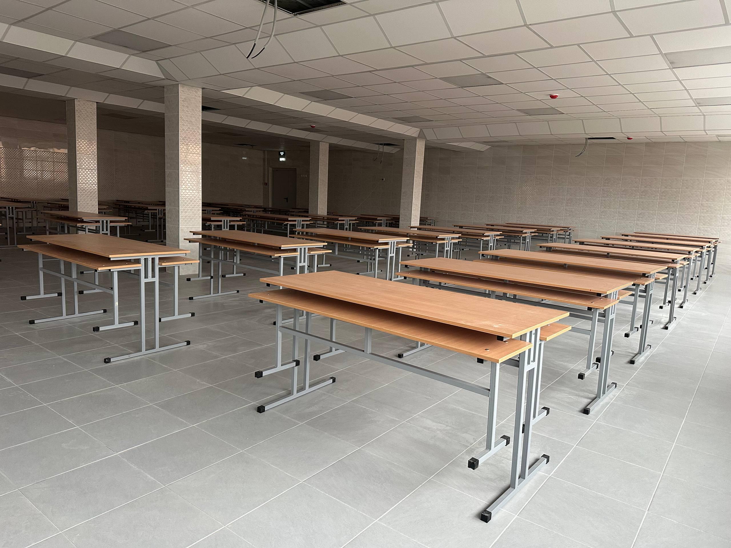 Если говорить о выполненных работах – школа практически готова к приему детей. Укомплектовываются классы, столовая полностью готова.