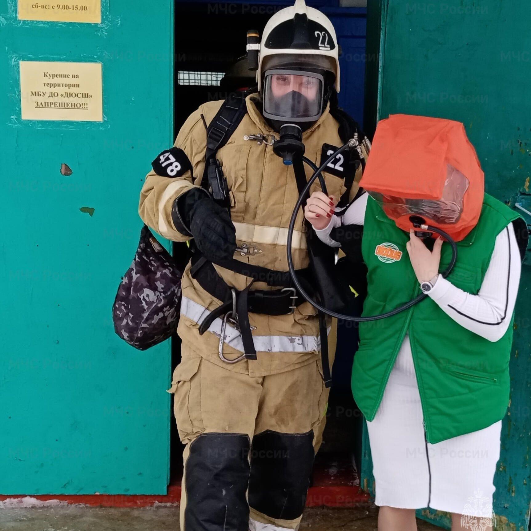 Спасатели провели разведку здания в защитных костюмах, обнаружили и эвакуировали условного пострадавшего. Пожар был успешно локализован и ликвидирован.