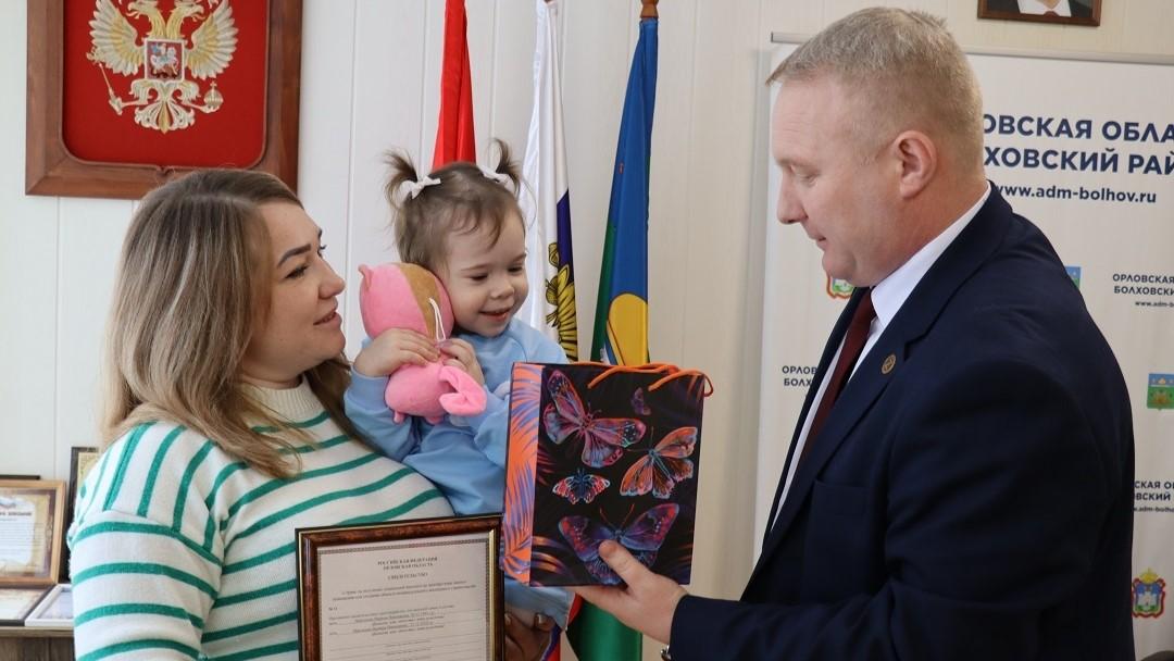 Жительница Болхова Марина Левочкина и её дочь Варвара благодаря господдержке смогут обзавестись собственным жильём. Накануне глава района Николай Чиняков торжественно передал семье документ, подтверждающий право на получение субсидии для покупки жилья либо возведения собственного дома. Об этом пишет издание «Болховские куранты».